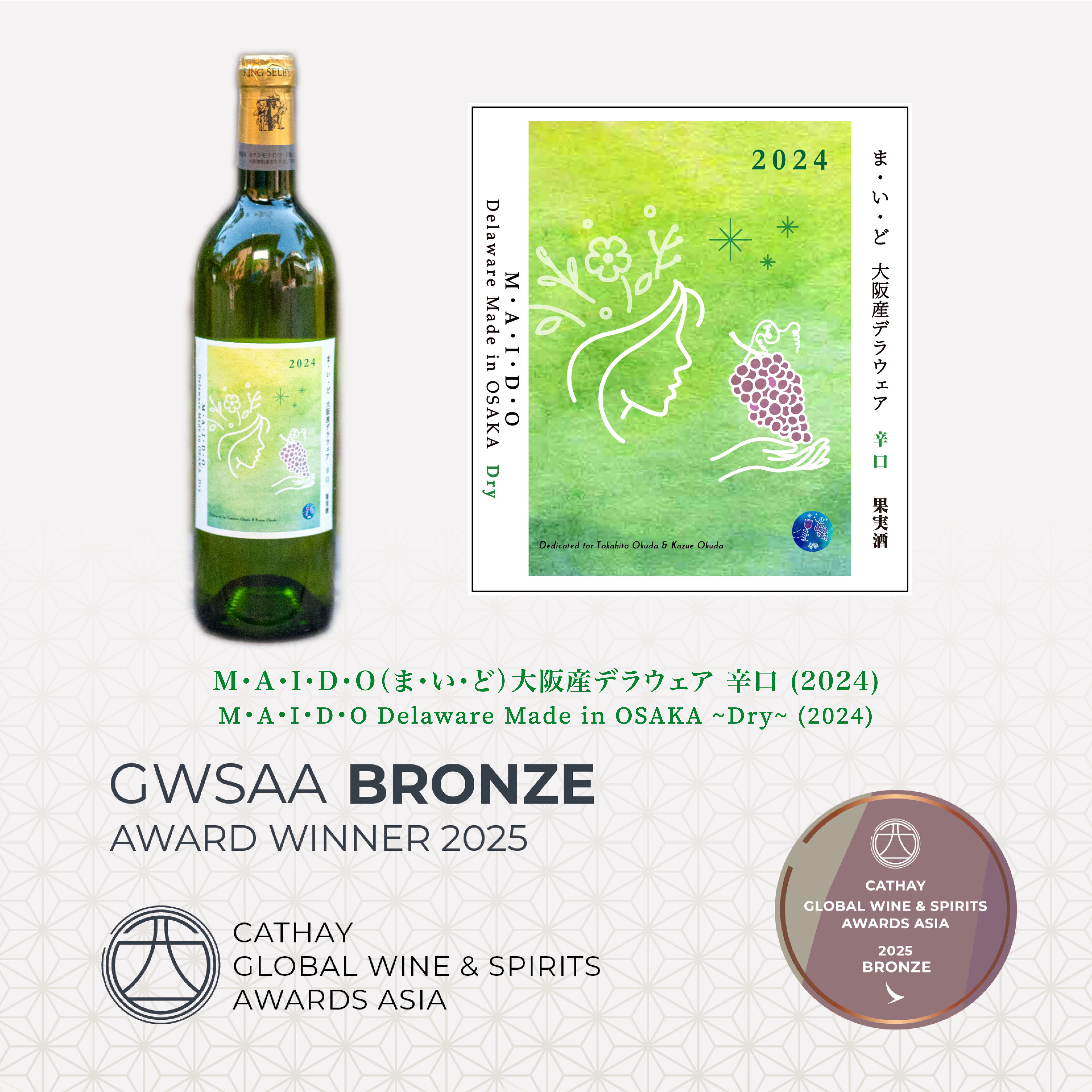 当方の主軸製品、M・A・I・D・Oシリーズの辛口版、’23年とGWSAA受賞ワイン・’24年辛口が飲み比べ出来ます。